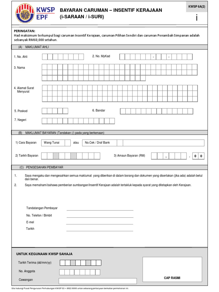 Borang i-Saraan KWSP 16G M Pendaftaran kali pertama sahaja. Cara bayaran caruman secara online. Sumbangan kerajaan ialah maksimum RM250 setahun.